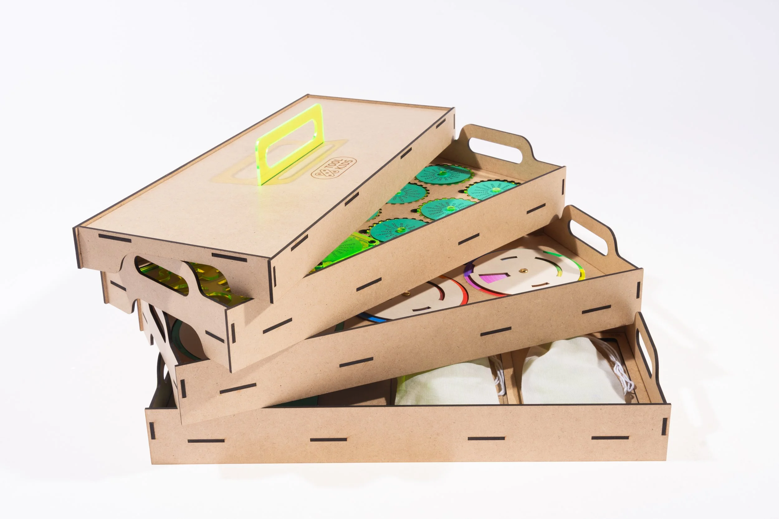 Eine TOOLKIDS BOX umfasst einen Klassensatz an Praxis- und Theorietools, sowie ausgewählte Hefte, in welchen jeweils unterschiedliche Designprozesse durchlaufen werden können. Allgemein ist der Workshop als Unterrichtssequenz geplant. Somit gibt es verschiedene Module, die durch die Lehrkraft individuell zusammengestellt werden können.