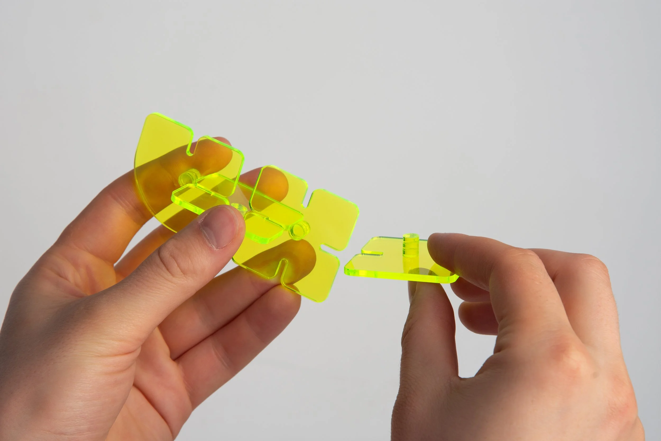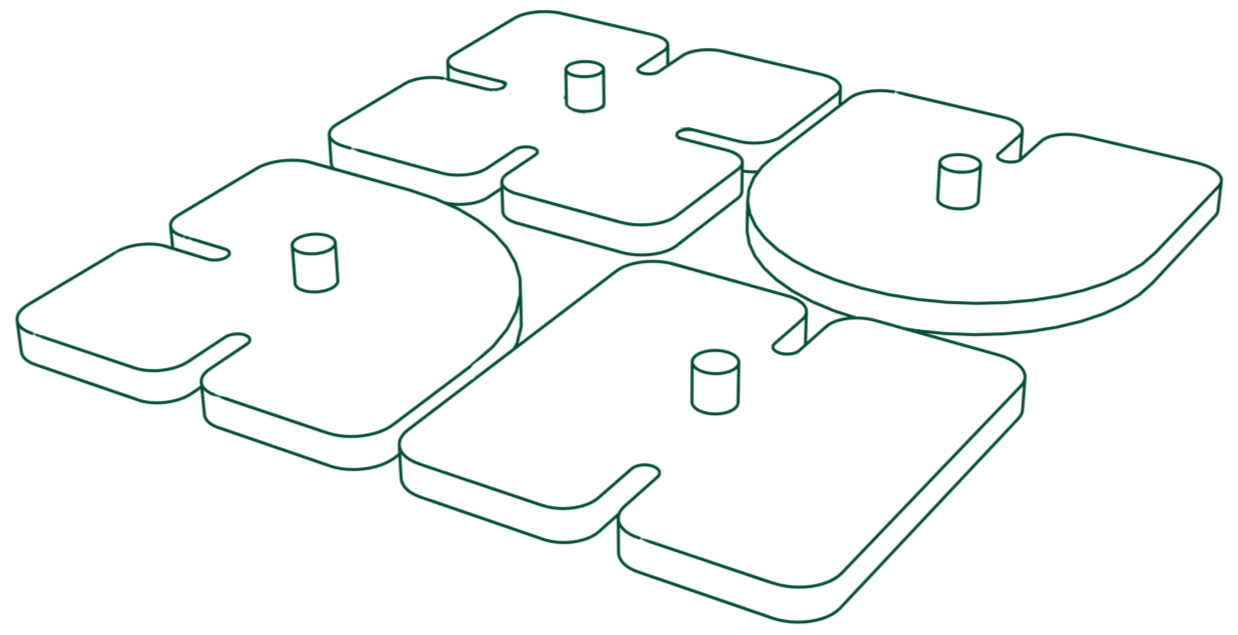 Die Formenstempel können zum einen als einfache Stempel verwendet werden. Dieser Ansatz dient ebenfalls als Alternative zum Zeichnen mit Stift und Papier. Zum anderen dienen sie aber auch als Stecksystem, mit dem freie Formen und Ideen umgesetzt werden können. Durch die flexible Nutzung bleibt es den Schüler:innen offen, wie sie das Tool in ihren Prozess integrieren.