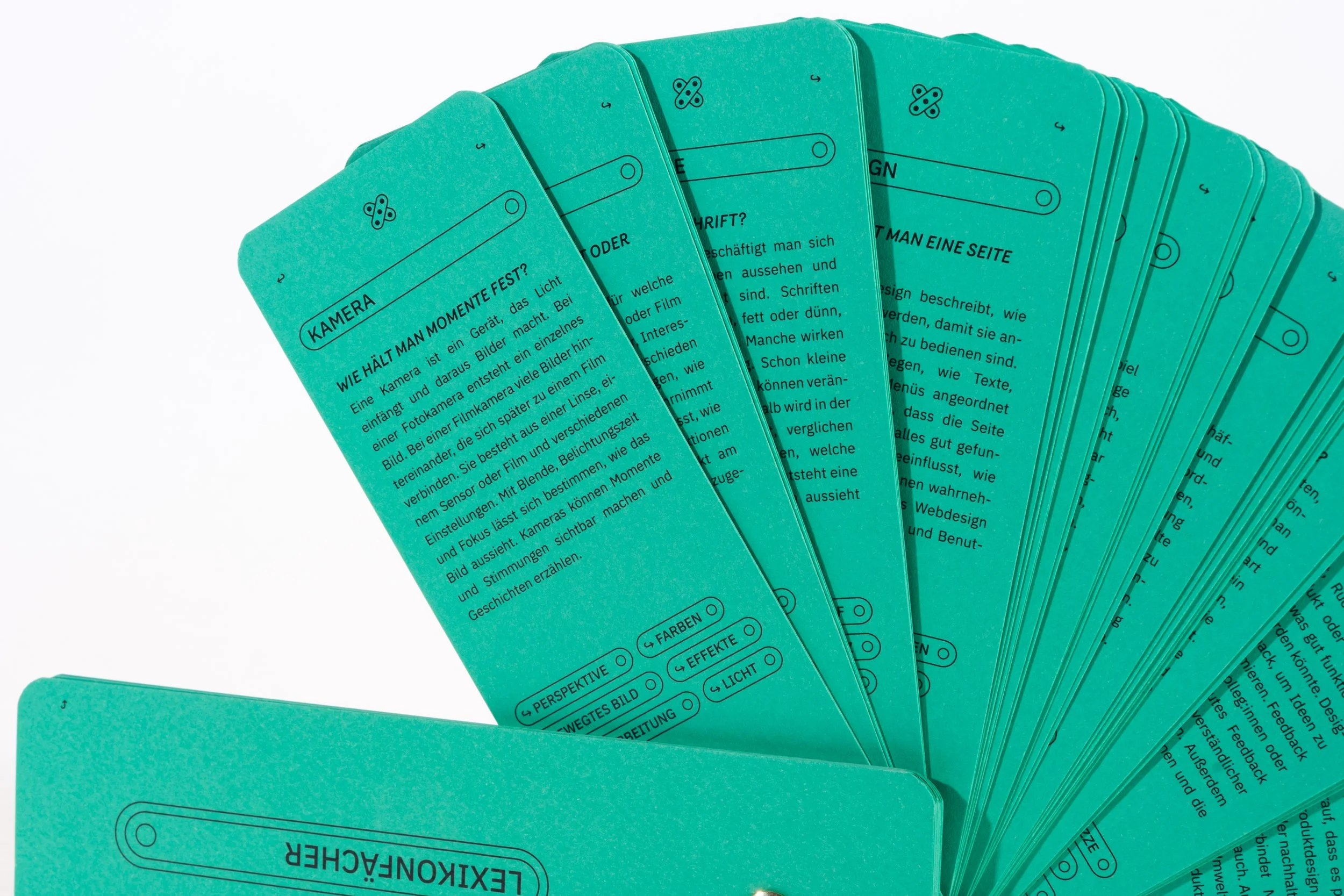 Um auch die theoretische Seite des Designprozesses zu vermitteln sind neben den Praxistools ebenso Theorietools enthalten. Die Theorietools versuchen auf Basis von Begriffen eine erste Orientierung im Designprozess zu bieten. Das Ziel ist es nicht, ein vollständiges Verständnis des Faches zu vermitteln, sondern den Schüler:innen ein Gefühl für die Vielfalt und Komplexität von Design zu eröffnen.