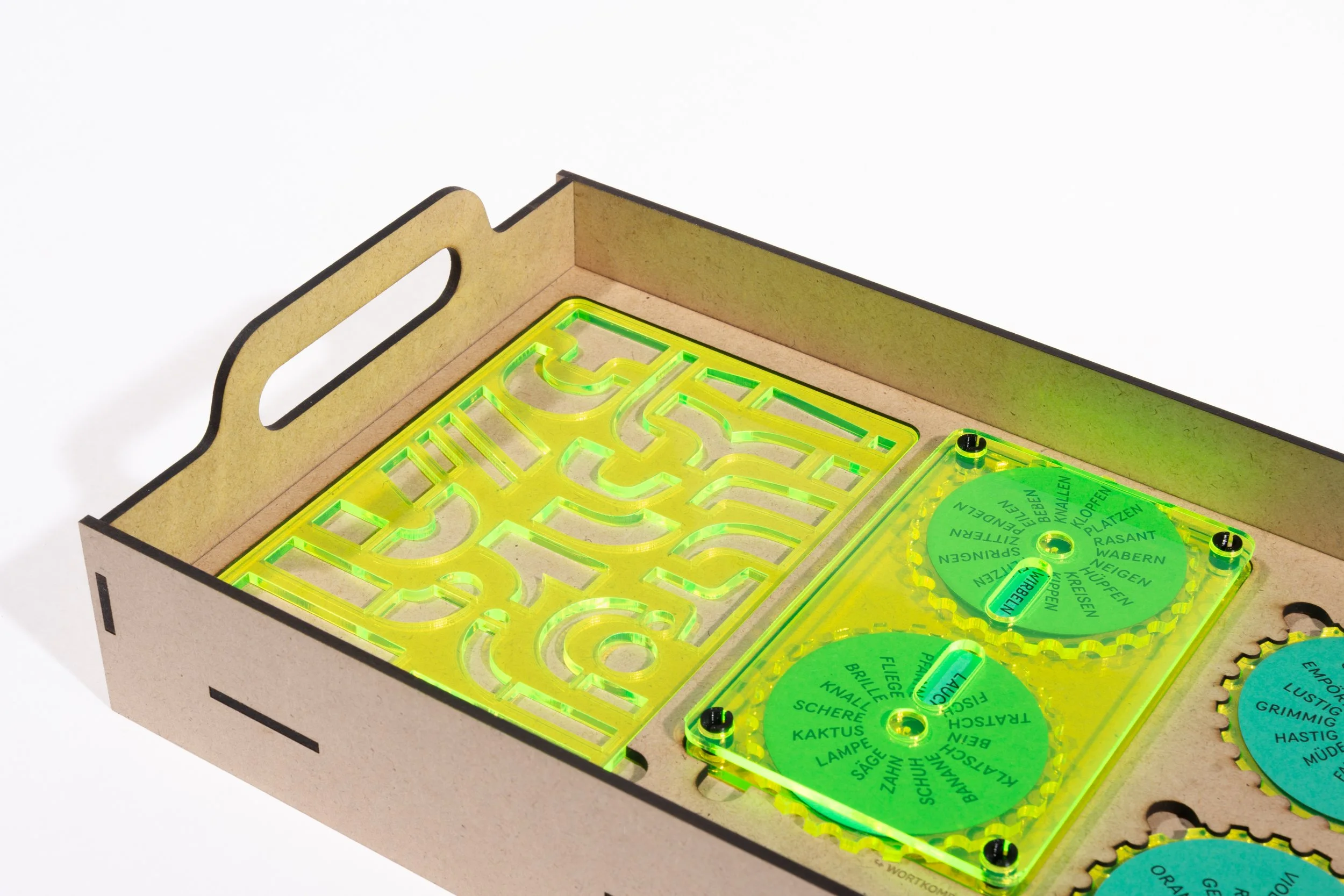 Die Zeichenschablone unterstützt einen ersten Zugang zu Schrift und Typografie. Mit ihr lernen die Schulkinder den Aufbau von Buchstaben und verschiedener Formensysteme. Es lassen sich sämtliche Varianten einzelner Zeichen zusammenstellen. Dadurch erkennen die Schüler:innen die gestalterische Bandbreite unterschiedlicher Schriftsysteme und könne sich spielerisch herantasten.